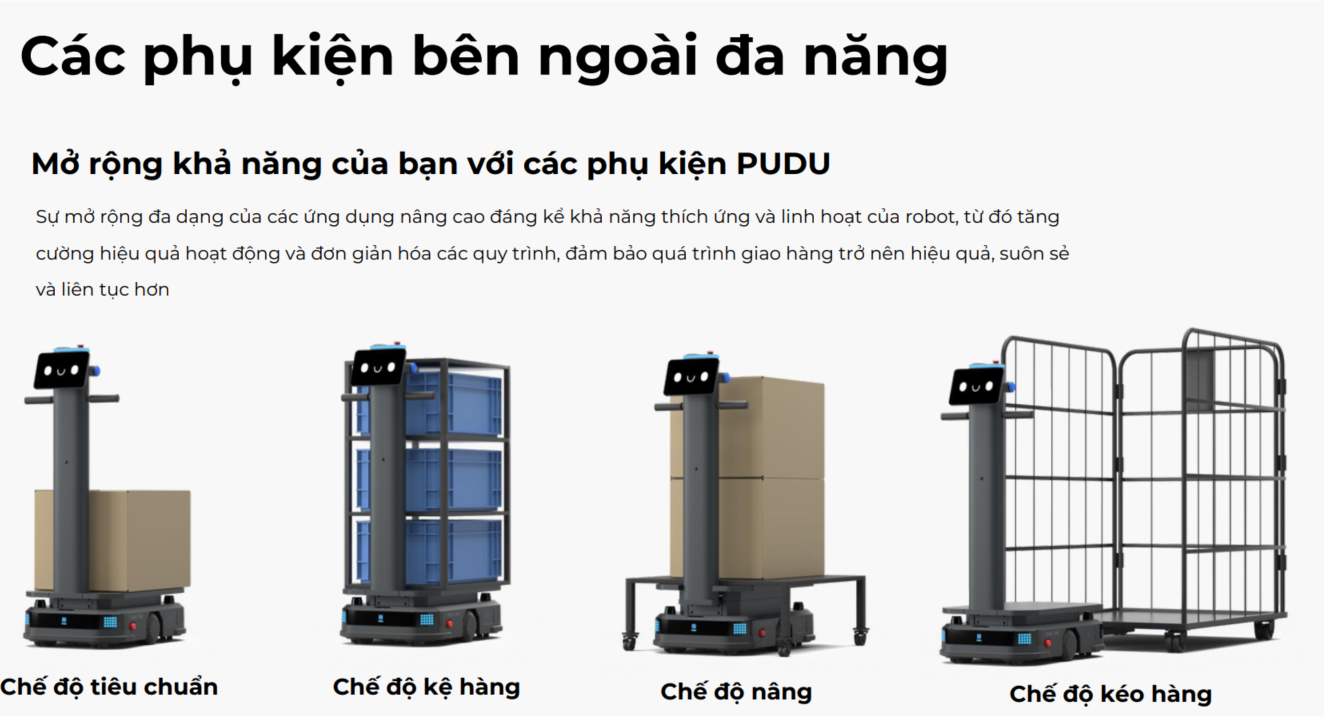 PUDU T150 là một robot giao hàng đa năng được thiết kế để vận chuyển vật liệu trong môi trường công nghiệp và giao hàng nặng trong các khu vực thương mại. Nó có khung gầm chịu tải chắc chắn với kiến trúc mở và bao gồm màn hình hoạt động để thuận tiện cho người dùng. Robot có thể xử lý tải trọng lên đến 150kg và được trang bị các tính năng IoT cần thiết như điều khiển thang máy, điều hướng cổng và chức năng nhắn tin từ xa. Nó cũng cung cấp các giao diện phần mềm và phần cứng phong phú, giúp dễ dàng tích hợp với các hệ thống phần mềm hiện có và mở rộng với phần cứng bổ sung.