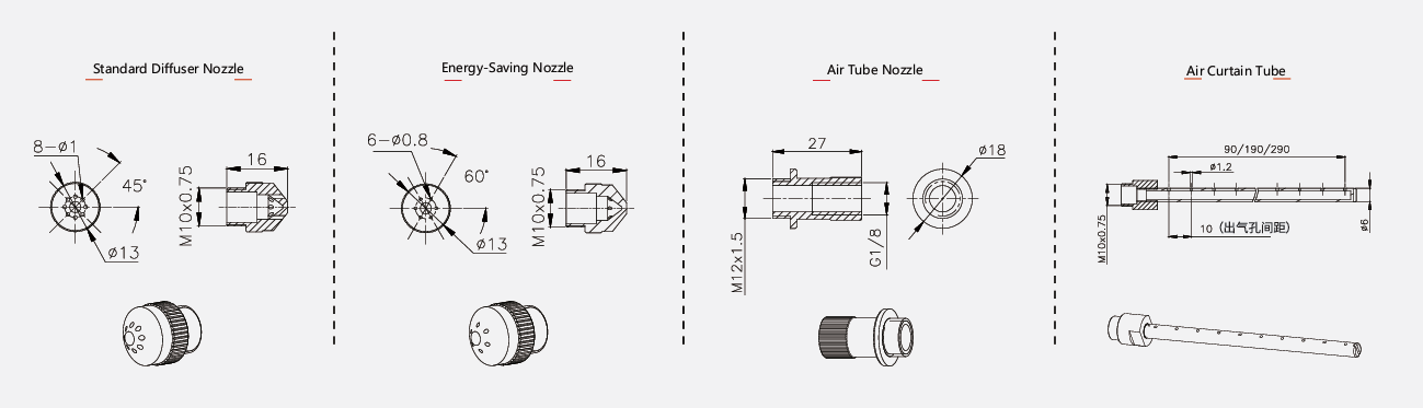 Có nhiều loại đầu phun phù hợp cho các môi trường khác nhau, bao gồm đầu phun tiết kiệm năng lượng và đầu phun dùng ống khí